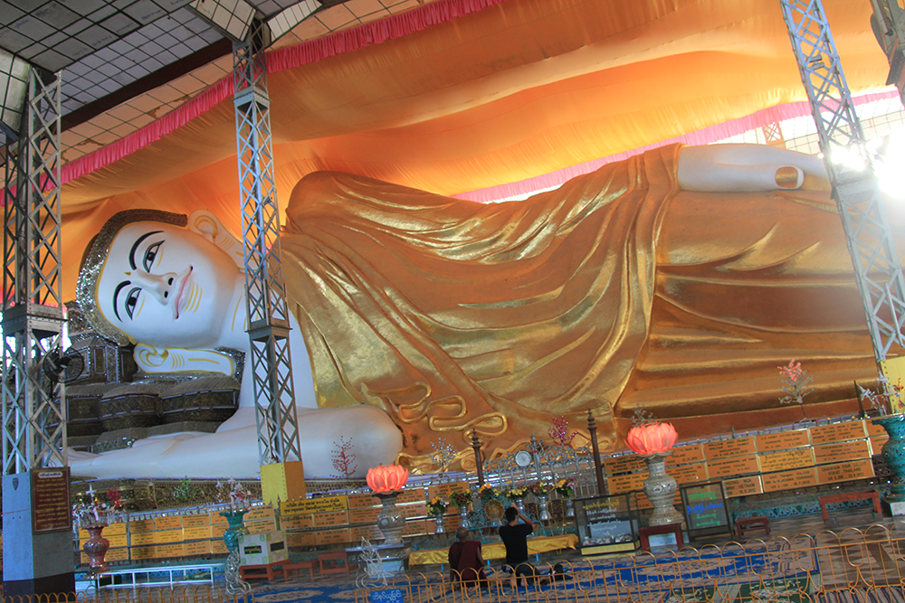 Bago is a city and the capital of Bago Region in Myanmar (Burma). It is located 50 miles (80 km) north-east of Yangon.According to legend, two Mon princesses from Thaton founded Bago in 573 CE. It was written in the chronicles that eight years after enlightenment, Lord Buddha along with his disciples flew around the Southeast Asian countries. On his return journey while crossing the Gulf of Martaban, which happened to be at low tide, he saw two golden sheldrakes sitting, female on top of male, on a peak of land protruding out of the sea just enough for a bird’s perch.